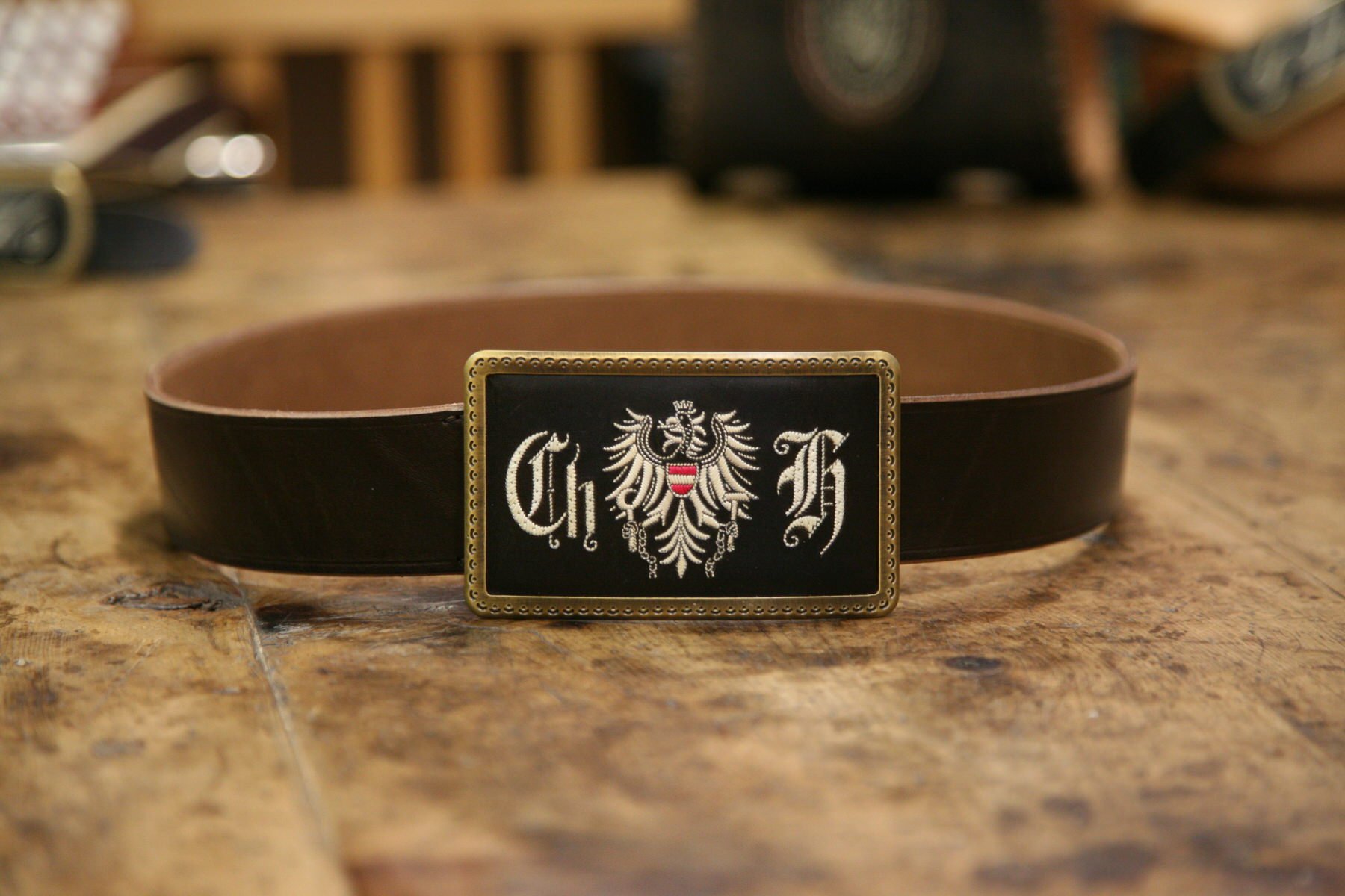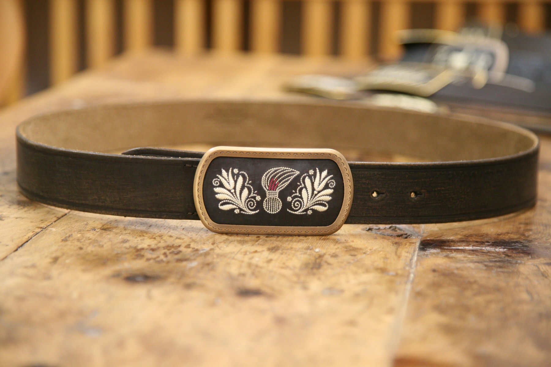 Unsere handgefertigten Gürtel vereinen Nutzen und Tradition. Mit Federkiel und Initialen zu persönlichen Einzelstücken verziert, zeugt jedes Modell von Sorgfalt, Handwerk und einem Gespür für das Besondere.